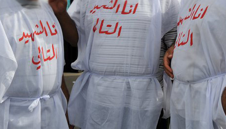 6 أشهر لشاب تظاهر بكفن مكتوب عليه «أنا الشهيد التالي»