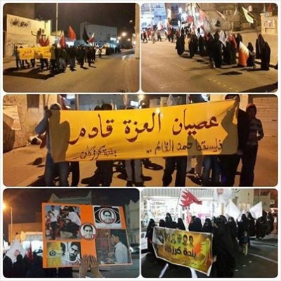 وكانت البحرين قد شهدت على مدى الأيام الماضية منذ انطلاقة هذا الأسبوع تصاعد أعداد المسيرات الشعبية مع اقتراب ذكرى اشتعال ثورتهم التي انفجرت في الرابع عشر من فبراير/ شباط للعام 2011.