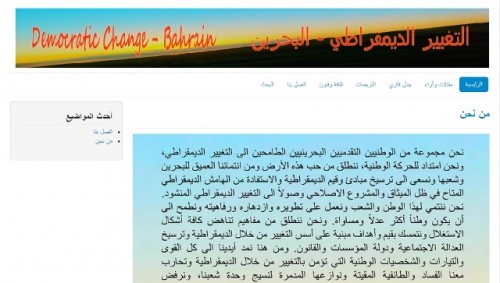 مرآة البحرين: أطلقت جماعة من المثقفين البحرينيين دعوا نفسهم بأنهم «مجموعة من الوطنيين التقدميين البحرينيين» موقعاً إلكترونيا بعنوان «التغيير الديمقراطي - البحرين»، وقالت إنها «تسعى لترسيخ الديمقراطية والعدالة الاجتماعية».