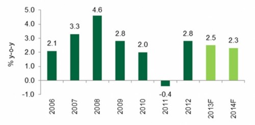 وارتفع الرقم القياسي لأسعار المستهلك خلال شهر يناير 2014 مقارنة مع نفس الشهر من عام 2013 بنسبة 3,3% حيث بلغ الرقم القياسي لأسعار المستهلك 120,2 نقطة خلال شهر يناير 2012 مقارنة بـ116,4 نقطة خلال نفس الشهر من عام 2013. وقد جاء هذا الارتفاع كمحصلة للتغيرات (الارتفاعات والانخفاضات) في أسعار سولة المستهلك خلال الشهر المذكور.