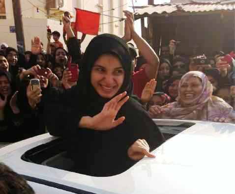 مرآة البحرين (مواقع): تم قبل قليل إطلاق سراح الشاعرة آيات القرمزي التي صدر حكم بحبسها الشهر الماضي لمدة عام لمشاركتها في احتجاجات 14 فبراير/ شباط الماضي. وأكد رئيس تحرير صحيفة "الوسط" السابق منصور الجمري على " تويتر " نبأ الإفراج عنها وأنها قد وصلت إلى منزلها وهي برفقة والدها حسن القرمزي. واعتلقت أيات القرمزي البالغة من العمر 20 عاما عقب إلقائها قصيدة في مهرجان مؤيد للإصلاح في دوار اللؤلؤة وجهت فيها الكلام إلى الملك حمد بن عيسى آل خليفة.
