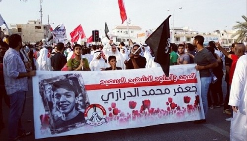 واستشهد جعفر الدرازي (23 عاما) فجر يوم الأربعاء في المستشفى جراء الإنهاك الذي أصابه من التعذيب الذي تعرض له، حسبما أظهرت ذلك صور بينت آثار صعقه بالكهرباء. فيما قالت السلطات إنه توفي إثر مضاعفات مرض السكلر الوراثي.