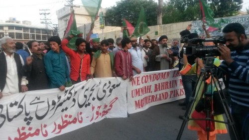 مرآة البحرين (خاص): تظاهر باكستانيون في مدينة كراتشي أمس (الخميس 20 مارس/ آذار) تنديدا بزيارة ملك البحرين حمد بن عيسى آل خليفة إلى باكستان، التي أجرى خلالها مباحثات مع رئيس الوزراء نواز شريف.
