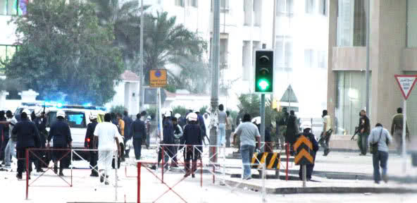 ![]() تفجيرات بعبوات ناسفة وزعتها وكالة أنباء البحرين في أغسطس وفي الاطار متهمان بهذا التفجير اعتقلا بعد يومين من الحادث |