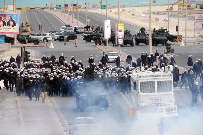 فمنذ اندلاع الاحتجاجات في الجزيرة- بعد احتجاجات مشابهة أسقطت النظامين التونسي والمصري- دخلت المعارضة- المتنوعة أساسا، ولكن يغلب عليها الطابع الشيعي- صراعا مع العائلة الحاكمة والحكومة ذات الطابع السّني. فقد اتُهمت المعارضة على اختلاف مشاربها بتنفيذ مؤامرة إيرانية، وتمّ على إثرها شنّ حملة قمع عنيفة ضد المحتجين، وتدخلت السعودية ودول الخليج العربية الأخرى عسكريا، واتُّهمَت المعارضة على أنّها تريد إسقاط الملكيّة.