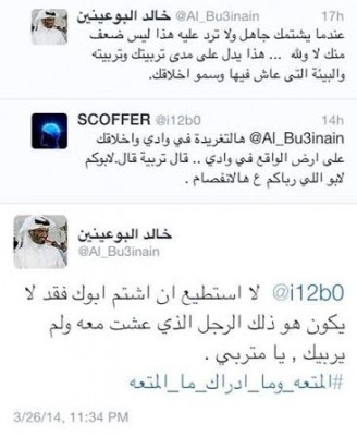 مرآة البحرين: بعد يوم من بيان جمعية "الوفاق" الوطني الإسلامية حول تصريحاته، واصل المتحدث باسم الجيش البحريني، خالد البوعينين، تصريحاته المشتملة على عبارات الكراهية الموجهة للمواطنين الشيعة في البحرين. وقال رداً على معلق عاب عليه الازدواجية حين حديثه عن التربية "لا أستطيع أن أشتم أباك، فقد لا يكون هو ذلك الرجل الذي عشت معه ولم يربيك يا متربي"، قبل أن يضيف ساخراً "المتعة وما أدراك ما المتعة"، في إشارة إلى الزواج المعروف بـ"المتعة" عند الشيعة.