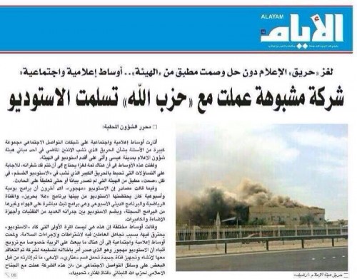 صحيفة تابعة لمستشار الملك البحريني تتهم شركة لبنانية "على علاقة بحزب الله" بالتسبب في حريق وقع في إستوديو لهيئة الإعلام