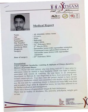 مرآة البحرين: طالبت عائلة الشاب علي عبدالله عباس (19 عاماً) وزارة الداخلية بالإفراج عن ابنها المصاب بسرطان الدماغ وشلل في عصب العين، وأجريت له مؤخرا عملية استئصال ورم في الدماغ في الأردن.