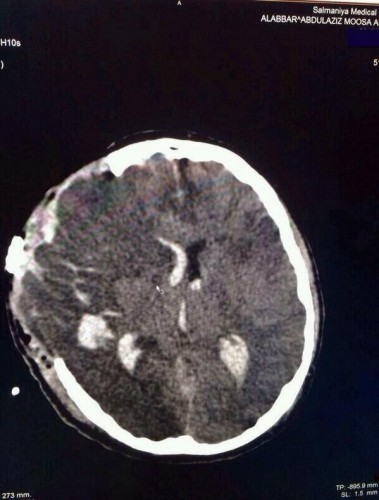 وأظهرت أشعة حديثة تلفا كبيرا في خلايا الدماغ نتيجة النزيف الحاد الذي خلفته طلقات الرصاص »الإنشطاري الشوزن«، التي قرر الأطباء أن التدخل لإزالتها من الدماغ قد يتسبب في خطر أكبر على حياته.