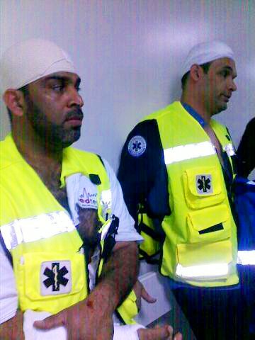 They threw stun bombs at the ambulance tires which exploded(7). The officer turned to Haneen and asked her: "You, what are you doing here?", she replied: "We transport the wounded in the ambulance". He yelled: "Are you considering those as wounded?". She held her hand to him and said "The hand that treated these people is the same hand that yesterday treated the Pakistani people who clashed with the youths. Our mission is to treat the wounded whoever they were". He said to her: "I'm a man, if I weren't I would beat you,". Then he threatened her that he would abuse her sexually, he repeated that threat several times. He then turned to the youths. Haneen tugged the hem of his trousers and pleaded: "Don't beat them, enough please". He yelled at her:"Take off your hand". He went to his men and said to them: "Enough, finished". He looked at Haneen and told her to bring scissors. Immediately she got up and cut the plastic ties around the youths and the paramedics wrists. Ameen's Fall