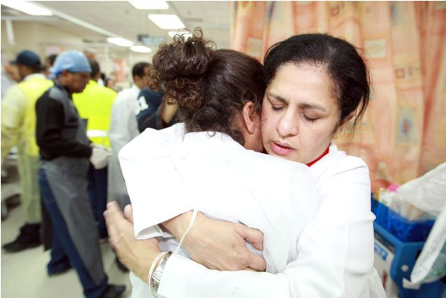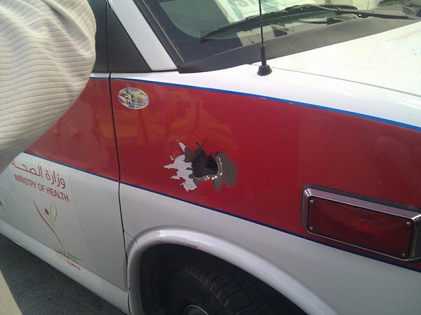 Ameen's limbs started to get cold. His friends tried to bring him saline bags. They were worried that he might get a low blood pressure. One of them went to bring saline bags from the ambulance. He quickly returned. There was a sniper standing near the ambulance and was shooting. After 45 minutes some of the youths went out and brought the needed kit from the ambulance. Ameen did not accept that the saline to be given to him. He was pointing with his eyes to another groaning injured, saying, that injured needed the saline more than he did. The Adventurous Return They stayed in that house for three hours. They phoned Salamaniya Hospital for an ambulance to transport them. It was not possible for the ambulance to enter the besieged Sitra. After 20 minutes Sitra's youths brought two large vans. The two vans moved on the roads very cautiously. The minutes were long and frightening, and the people falling from exhaustion and horror. O' Sitra, how long your day was! Finally the youths were able to reach a safe road and from there they went to Salmaniya. There was another hysteria. Another crowd, other stories. The paramedic Ameen and the injured youths were removed immediately, Rula Al-Saffar embraced Haneen. Haneen did not believe she had returned and still alive. Her body was groaning after a long violent day, her energy was drained out. She slept in the hospital, but would she have rest? On Wednesday March 16, in the morning another event was waiting for her and for the other medical staff in a sequel of horror. That will be the topic of the next part.