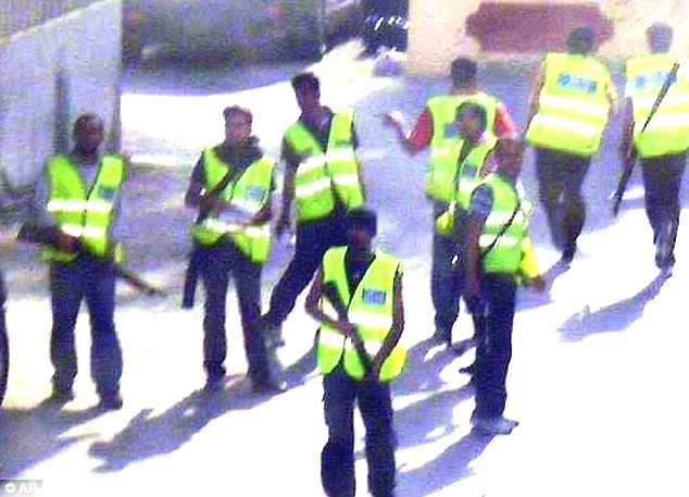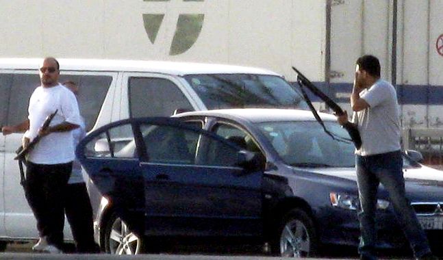 ![]() المسلحون ينتشرون عبر سياراتهم المدنية |