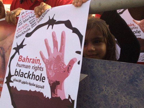 ãÑÂÉ ÇáÈÍÑíä (ÎÇÕ): ÇÚÊÕã ãäÇÕÑæä ááãÚÇÑÖÉ ÚÕÑ Çáíæã (ÇáÇËäíä 26 ãÇíæ/ ÃíÇÑ 2014) ÃãÇã ÈíÊ ÇáÃãã ÇáãÊÍÏÉ Ýí ÇáÚÇÕãÉ ÇáãäÇãÉ¡ ÊäÏíÏÇ ÈÇäÊåÇßÇÊ ÍÞæÞ ÇáÅäÓÇä Ýí ÇáÈáÏ ÇáÐí íÔåÏ ÇäÊÝÇÖÉ áÅäåÇÁ ÇÓÊÍæÇÐ Âá ÎáíÝÉ Úáì ÇáÓáØÉ.