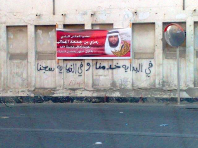 من الجيد أن نعرف أنها المحاولة الأولى لجمهور الموالاة في التعبير عن نفسه على جدران المنازل، قبلها اعتاد مراهقو هذه المنطقة ملء الجدران بجمل الحب ورسومات تشي بجرأة جنسية، لكنها المرة الأولى التي يكتب فيها عن الشأن السياسي، عن الإحباط وعن الغضب الذي يعتمل في قلوب شبّانه، كما أنها الرسالة الواضحة التي يستلمها الحكم، على أن أمثال النائب السابق (محمد خالد) الذي لا يعرف من الكلام غير أبجديات الكراهية، قد نجح وأشباهه في شحن نفوس الموالاة على الشارع الشيعي تحديداً، بالقدر الذي صاروا يتجرؤون فيه على الوقوف ضد الحكومة، فيما لو أبدت الحكومة أي نية بالتنازل، وأن هؤلاء ليسوا قلائل ولا عديمي حيلة، بل باستطاعتهم أن يشاغبوا النظام ويزعجوه إن حدث شيء ما على غير رضاهم .