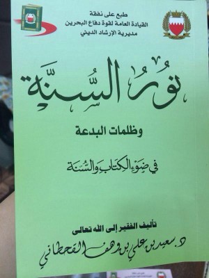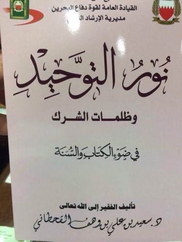 كما قامت مديرية الإرشاد بوزارة الدفاع أيضاً بطباعة كتاب آخر على نفقتها للمؤلف نفسه، تحت عنوان "نور التوحيد وظلمات الشرك في ضوء الكتاب والسنة"، وهو يحوي مضامين التكفير ذاتها، ويمثل واحداً من الكتب التي يتم توزيعها على منتسبي قوة الدفاع البحرينية.