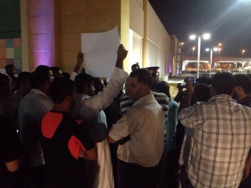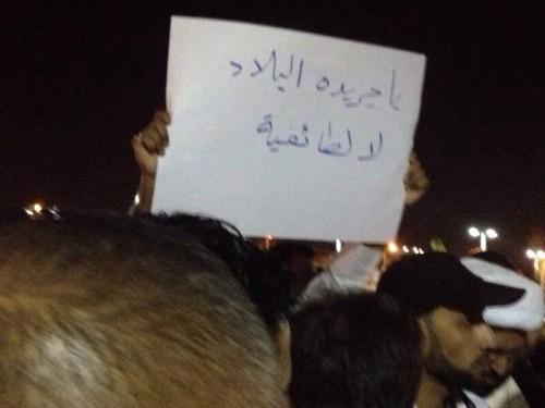 تظاهرة أمام مبنى صحيفة البلاد احتجاجا على التعرض لآخر أئمة الشيعة