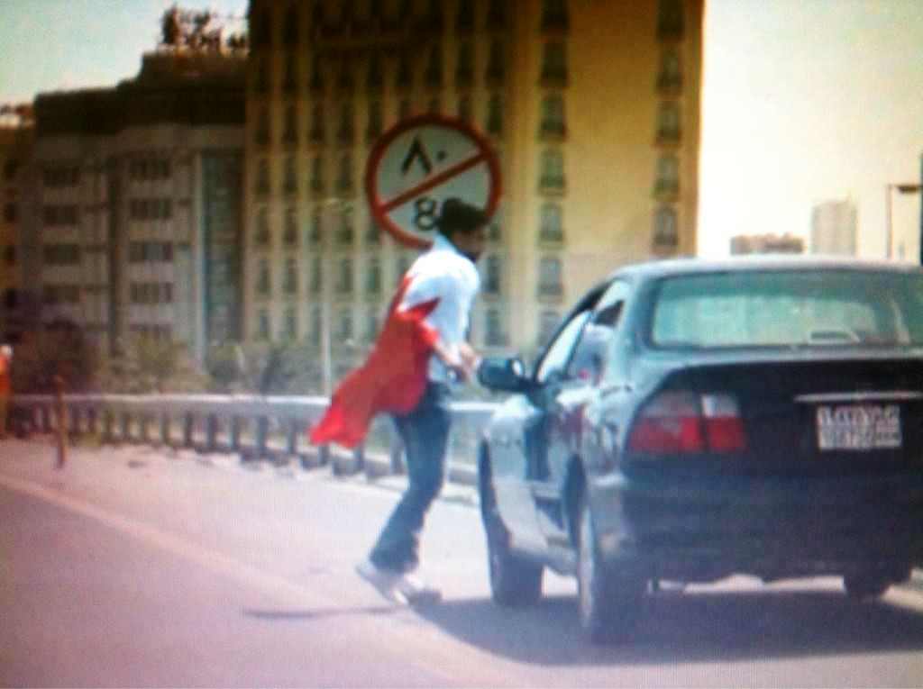 شاب بحريني آخر يعبر عن وفائه للأطباء بحمل علم الوطن للدوار قبل أن يختفي وتكسر سيارته