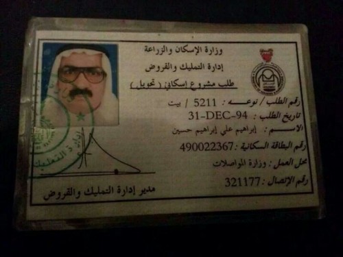 مرآة البحرين: بينت بطاقة الطلب لمواطن توفي في وزارة الإسكان اليوم الأربعاء أن عمر طلبه للحصول على سكن يعود إلى 20 عاماً. وتوضح بطاقة المواطن إبراهيم علي إبراهيم حسين الصادرة عن إدارة التمليك والقروض التابعة إلى وزارة الإسكان أن تاريخ طلبه للحصول على مشروع إسكاني يعود إلى 31 ديسمبر/ كانون الأول 1994، ما يعني انتظاره لمدة عشرين عاماً.