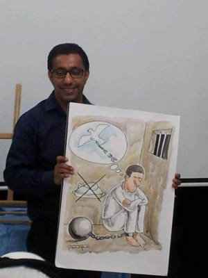 وتخللت الفعالية عرض لمونتاج يروي معاناة المعتقلين المضربين، فيما رسم الفنان محمود حيدر كاريكاتير يصف حال المعتقلين المضربين الذين يقايضون الطعام بالحرية قائلاً: "تعمدت ترك الكاريكاتير دون تعبير لفظي، الصورة أبلغ من الكلمات، والمشهد حسبما رسمته لا يحتاج تعليق".