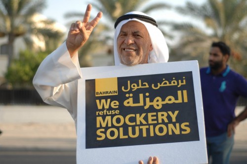 وشارك آلاف المتظاهرين في واحدة من الاحتجاجات المستمرة التي تنظمها جمعية الوفاق المناهضة للحكومة يوم الجمعة. وقال الأمين العام للجمعية الشيخ علي سلمان إن الإصلاحات المقترحة لا تمثل المعارضة أو الشعب البحريني.