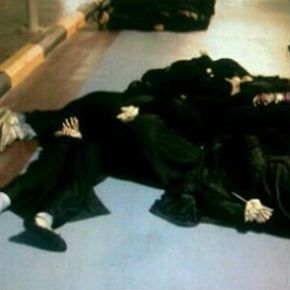 لكن ما أثار نقمة المتظاهرين، هو اعتقال قوات الأمن فعلاً لعدد كبيراً من الفتيات من داخل المجمع وما قام به مرتزقتها من الاعتداء الآثم على حرماتهن حيث التقطت عدة صور لهن وهن مكبلات وملقيات على الأرض بشكل لا أخلاقي ومهين.
