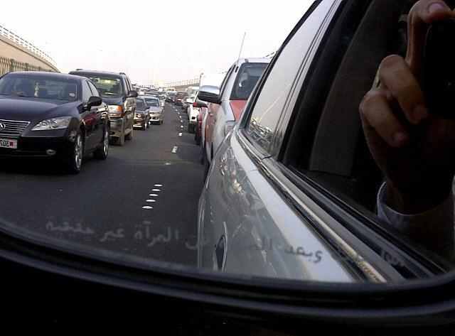 في الوقت نفسه، كانت الصور الجوية التي تظهر حجم التطويق وامتداده قد تم نقلها عبر تويتر والفيس بوك، لتظهر كثافة التطويق الذي امتد على طول الشارع المؤدي إلى ميناء سلمان، والمناطق المحيطة. إحدى المشاركات تقول " لأول مرة أرى كل هذا الاستمتاع بالازدحام، والوجوه التي عادة ما تكون مكفهرة ومعصبة صباحاً، أراها مبتسمة ولا مبالية بالوقت، بل إنها تتصنع الجدية كي لا يلحظها رجال المخابرات المنتشرين عبر سياراتهم معنا في الشارع" سيدة من غير المشاركات تقول " كنت عائدة من إيصال أبنائي لمدارسهم، أدهشني أنه بخلاف الصباحات التي يتسابق فيها الناس للوصول سريعاً، كانوا صباح اليوم يسيرون على جهة اليمين، ويسوقون بسرعة لا تتجاوز 60 كم في الساعة، كان منظر السواق يبعث على الضحك والفكاهة، هكذا وجدت نفسي أدخل معهم جهة اليمين، وأسوق مثلهم، ثم انتقلت للوسط، وأخيراً لليسار قبل أن أغادر".