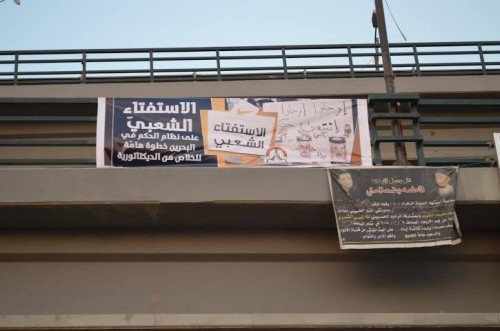 مرآة البحرين (خاص): قطع محتجون العديد من الشوارع العامة في البلاد في وقت واحد عصر اليوم، وبث ائتلاف شباب 14 فبراير صورا للعمليات التي قال إنها تأتي تحت شعار "الاستفتاء الشعبي قادم".