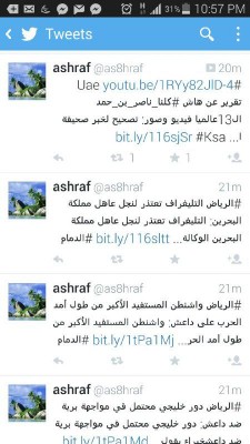 فيما يلي نماذج من هذه الحسابات الوهمية التي يديرها النظام البحريني، قمنا بتصوير مقطع منها لنكشف جانب من ضحالة هذا النظام وإفلاسه من شعبه..