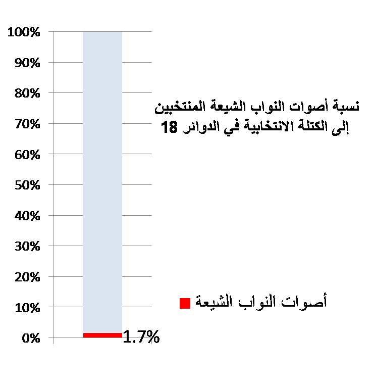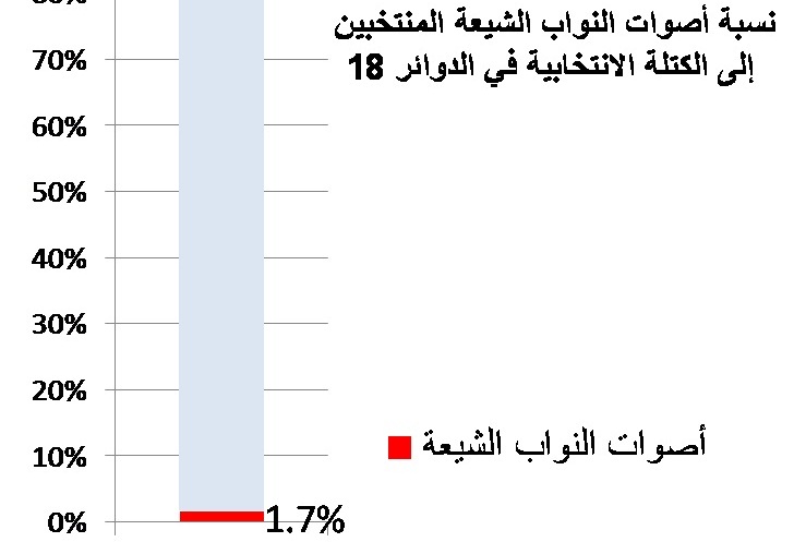 تمثيل الشيعة في البرلمان، والكتلة الانتخابية ممثلة ب7% من الأصوات فقط