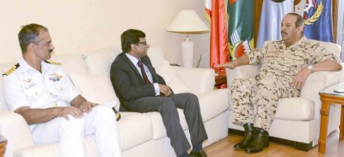 واجتمع القائد العام لقوة دفاع البحرين، خليفة بن أحمد آل خليفة بمكتبه في القيادة العامة أمس مع سفير جمهورية الهند لدى مملكة البحرين موهان كومار بحضور قائد السفن الحربية العقيد الركن بحري ساوهني، والملحق العسكري الهندي المعتمد لدى المملكة والمقيم في مسقط العقيد الركن بحري ارجون ديف ناير؛ وذلك في إطار زيارة عدد من السفن الحربية التابعة للقوات البحرية بجمهورية الهند الصديقة للبلاد.