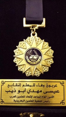 مرآة البحرين: منحت نقابة المعلمين اللبنانية وسام المعلم الذهبي للأمين العام المساعد لاتحاد المعلمين العرب ورئيس جمعية المعلمين البحرينية (المنحلة) الأستاذ مهدي أبوديب الذي لا يزال يقضي عقوبة بالسجن 5 سنوات بسبب نشاطه خلال ثورة 14 فبراير 2011 .