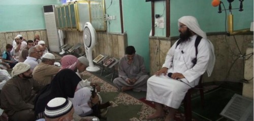 غير أنّ المساهمة البحرينية الكبرى في داعش لم تكن على شكل دعم بالمقاتلين أو بالتّمويل فقط. بل كانت من خلال دعم أيديولوجي ومعنوي أيضًا، لا سيّما من عالم الدين البحريني المتطرّف تركي البنعلي، الذي يقيم الآن في الموصل ويمثّل [المرشد] المذهبي الرّوحي لتنظيم داعش، والذي شدد في كتاباته على أن أبو بكر البغدادي هو الأحق بالخلافة، ويتوجّب على المسلمين مبايعته. ويمكن مشاهدة خطاباته في البحرين، وليبيا، وتونس على موقع يوتيوب. وقد كان يسافر ويلقي الخطب بحرّيّة حتّى نهاية العام 2013 على أقل تقدير، إن لم يكن في وقتٍ لاحق. (وفي الصورة أعلاه، يترأّس البنعلي صف إرهاب في الموصل). وفي العام الماضي، قاد البنعلي تظاهرة أمام السّفارة الأمريكية في العاصمة البحرينية المنامة، بلا أي أثر للغاز المسيل للدموع أو السيطرة على الحشود، الذي يطبّق بشكل اعتيادي خلال التّظاهرات المطالبة بالديمقراطية، على الرّغم من أنّ المتظاهرين كانوا يحملون أعلام القاعدة وصورا لأسامة بن لادن.