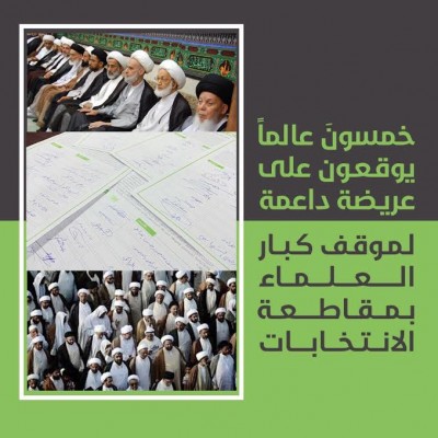 وأكدت العريضة دعم رجال الدين الموقعين عليها لموقف "كبار العلماء" الذي أكد على مقاطعة الانتخابات النيابية والبلدية المقبلة.