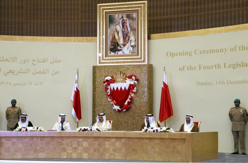 مرآة البحرين (خاص): افتتح ملك البحرين حمد بن عيسى آل خليفة (الأحد 14 ديسمبر/ كانون الأول 2014) دور الانعقاد الأول من الفصل التشريعي الرابع لمجلسي الشورى والنواب، الذي تهيمن عليه جماعات وأفراد موالية للنظام في ظل استمرار مقاطعة المعارضة للمؤسسة شبه الرسمية.