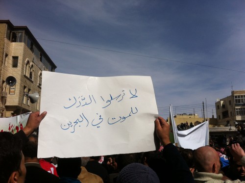 وأضاف "هل يقبل الأردني بوجود دركي غير أدرني يصول ويجول في وطنه؟" و "لماذا تقوم حكومتنا بإرسال درك أردني للبحرين" و "هل المهمة التدريبية تؤدي إلى وجود دركنا في الشوارع الغاضبة في البحرين".