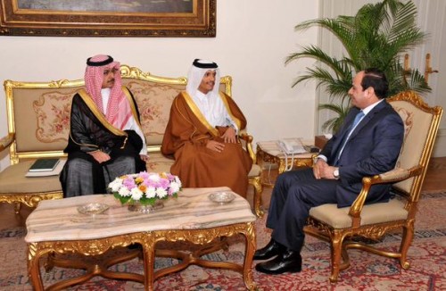 وقد أبدت المملكة العربية السعودية مباركتها للخطوات الجارية التى من شأنها توطيد العلاقات بين جمهورية مصر العربية ودولة قطر ومن ضمنها الزيارة التى قام بها المبعوث الخاص لأمير دولة قطر محمد بن عبدالرحمن آل ثانى إلى مصر.