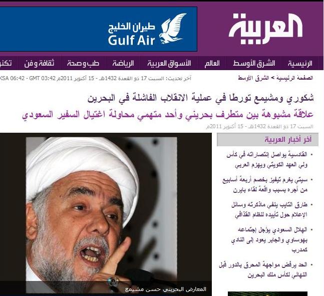 مرآة البحرين (خاص): لم يكن مفاجئا أن يظهر خبر شاكوري-مشيمع بالمانشيت العريض في صدر افتتاحيات الصحف الرسمية في البحرين "نقلا عن صحف أمريكية". وفي مفارقة غريبة ومثيرة أرجعت وكالة أنباء البحرين، مصدر هذه التقارير إلى مسئولين أميركيين، أو "مصادر غربية" كما تنقل هذه الصحف وتقتفي أثرها صفحة العربية.نت. في حين أن الرواية بقضها وقضيضها سعودية بامتياز. هي رواية واحد (السعودية)، وبحسب تعبير علماء الجرح والتعديل، هي حديث آحد، والسلفيون يأخذون بحديث الآحد ولا يأخذون بحديث العقل.