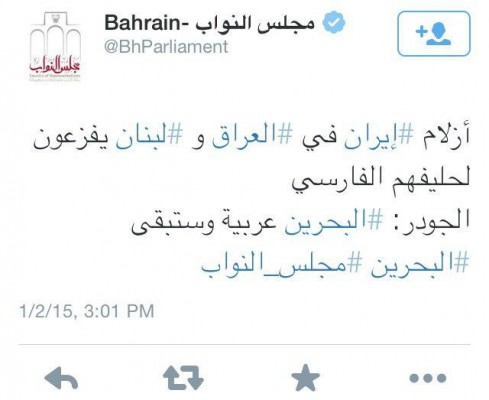 مرآة البحرين: وصف مجلس النواب البحريني دعوات التضامن التي انطلقت في إيران والعراق ولبنان ضد اعتقال أمين عام جمعية "الوفاق" الوطني الإسلامية بأنها "فزعة للحليف الفارسي".