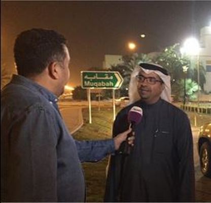 نشرت صورة في وسائل التواصل الاجتماعي الى عيسى عبد الرحمن وزير شئون الاعلام في الحكومة غير الشرعية، وهو يتحدث لإحدى القنوات الموبؤة امام لوحة إرشادية تدل على منطقتنا، وهي منطقة مقابة في محاولة لايهام الرأي العام بأن الأوضاع في المنطقة مستقرة.