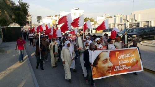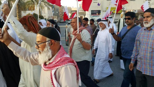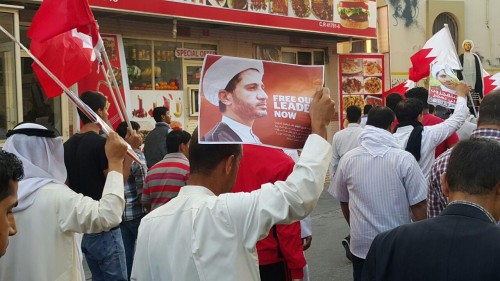 وشاركت حشود من المواطنين في التظاهرة الغاضبة التي عبرت شوارع البلاد القديم، جنوب العاصمة المنامة، مرددة شعارات تنادي بالحرية للشيخ علي سلمان والتمسك بمطالب الشعب الديمقراطية والعدالة.