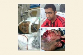 وواصل المركز "حسن الإسكافي (27 عام) كان قد أصيب في يوليو 2011 بطلقة مباشرة في الرأس تسببت في تهشم جمجمته وفقده لإحدى عينيه مما استدعى نقله للمستشفى لتلقي العلاج حيث بقي في العناية المشددة لمدة 3 أشهر قبل أن يتم التحقيق معه واعتقاله بتهمة احتلال مركز شرطة الخميس وحكم عليه بالسجن 5 سنوات ثم تمت تبرئته والإفراج عنه، وبعد نقله للعلاج في الخارج أجريت للإسكافي تسع عمليات لتركيب جمجمة اصطناعية عوضاً عن جمجمته المهشمة".