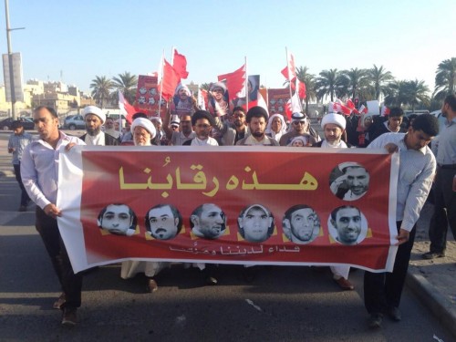 التظاهرات التي خرجت في الدراز وسار والديه والبلاد القديم ومناطق مختلفة من البحرين، استنكرت أحكاما بالإعدام بحق 3 معارضين صدرت عن محاكم النظام أمس (الخميس 26 فبراير/ شباط 2015).