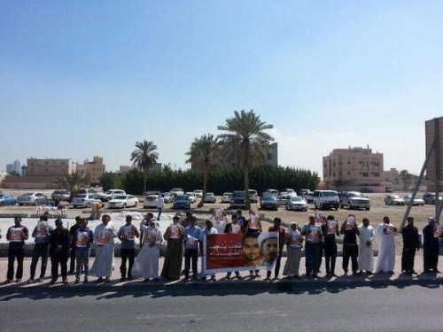 وأقام المصلون عقب الصلاة سلسلة بشرية احتجاجاً على بقائهما مهدمين كما رفعوا صورا للشيخ علي سلمان مطالبين بالإفراج عنه.