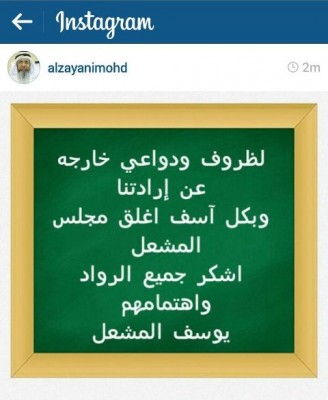 ونقل العقيد البحريني المتقاعد محمد الزياني رسالة قصيرة في حسابه على "الانستجرام" من المشعل قال فيها "لظروف ودواعي خارجة عن إرادتنا وبكل أسف أغلق مجلس المشعل، أشكر حضور جميع الرواد واهتمامهم".