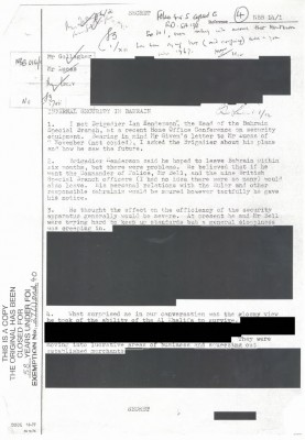 ونشرت "بحرين ووتش" فقرات مجتزأة من الوثيقة، وصورة منها، كانت الخارجية البريطانية قد سمحت بالكشف عنها، وفيما يلي نص الفقرات:
