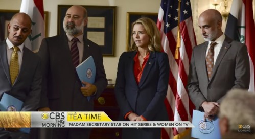 بهذه المشاهد تبدأ الحلقة الثالثة عشرة من مسلسل Madam Secretary (السيدة وزيرة الخارجية)، المسلسل الجديد الذي بدأت قناة سي بي إس الأمريكية عرضه العام الماضي 2014، ولم ينته موسمه الأول حتى الآن، حقق مشاهدات عالية، ففي فبراير/شباط 2015، ووفق تقارير صحفية اعتبر المسلسل الأعلى مشاهدةً في الولايات المتحدة الأمريكية بواقع 14 مليون مشاهد.