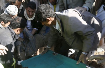من جهته قال علي القحوم عضو المكتب السياسي لجماعة أنصار الله إن مئات القتلى سقطوا خلال أربع غارات شنها "عدوان" التحالف الذي تقوده المملكة العربية السعودية على إحدى مخيمات اللاجئين.