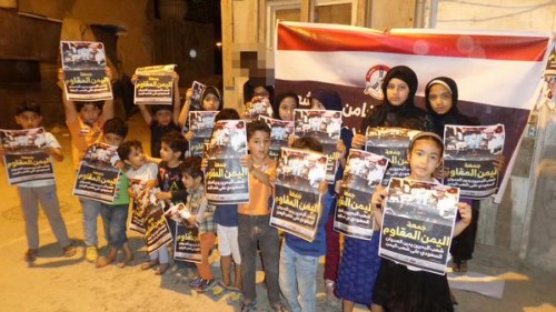 مرآة البحرين: شارك أطفال البحرين في وقفة تضامنية حملت عنوان "جمعة اليمن المقاوم" يوم أمس السبت 4 أبريل/ نيسان 2015 تضامنًا مع أطفال اليمن الذين يتعرضون للقتل منذ بدء الحرب التي تشنها المملكة العربية السعودية ودول الخليج على اليمن منذ 26 مارس/آذار الماضي.