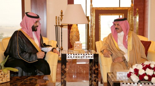 مرآة البحرين: استقبل ملك البحرين حمد بن عيسى آل خليفة وزير الدفاع السعودي محمد بن سلمان بن عبدالعزيز آل خليفة (الاثنين 13 أبريل/ نيسان 2015) والوفد المرافق له، وبحث الجانبان "سير عمليات عاصفة الحزم (الحرب التي تقودها السعودية ضد اليمن).