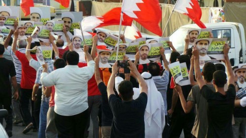 ورفعت التظاهرات صورا للشيخ علي سلمان ورددت هتافات تؤكد على أحقية شعب البحرين في التحول إلى الحكم الديمقراطي، وإنهاء استحواذ عائلة آل خليفة على السلطة.